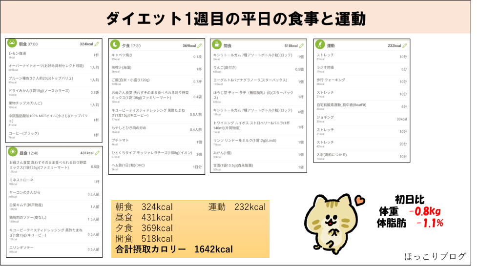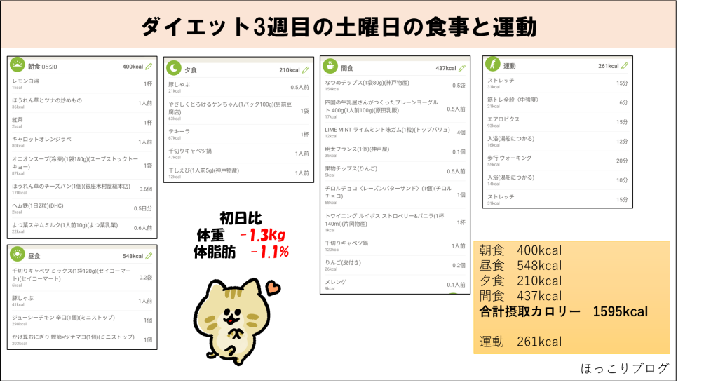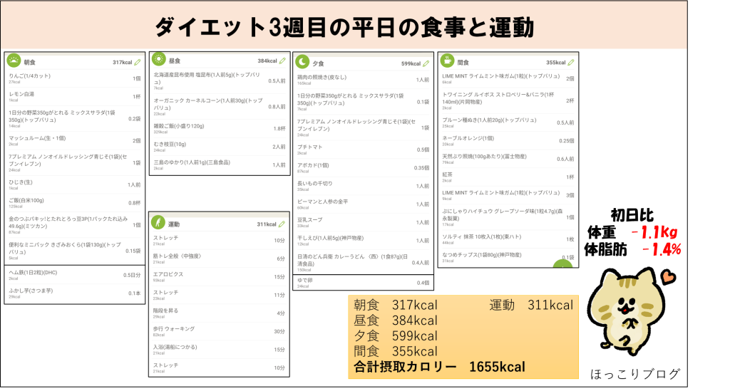 3週間食事記録をつけてみてわかったこと(私の場合)はこんな感じでした。