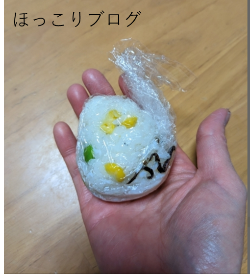 これは枝豆、コーン、しらす、塩昆布入りのおにぎり。